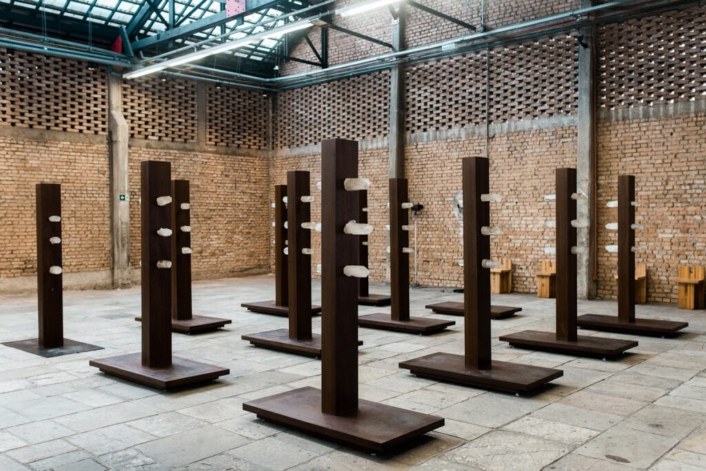 Zeit, sich mit 6-Kristall-Stehpfeiler zu kristallisieren, einer faszinierenden Installation, die für die Terra Comunal-Ausstellung geschaffen wurde. Stellen Sie sich sechs Kristallsäulen vor, die aus dem Boden aufragen und Sie einladen, über das harmonische Miteinander von Natur und von Menschen geschaffenen Wundern nachzudenken.