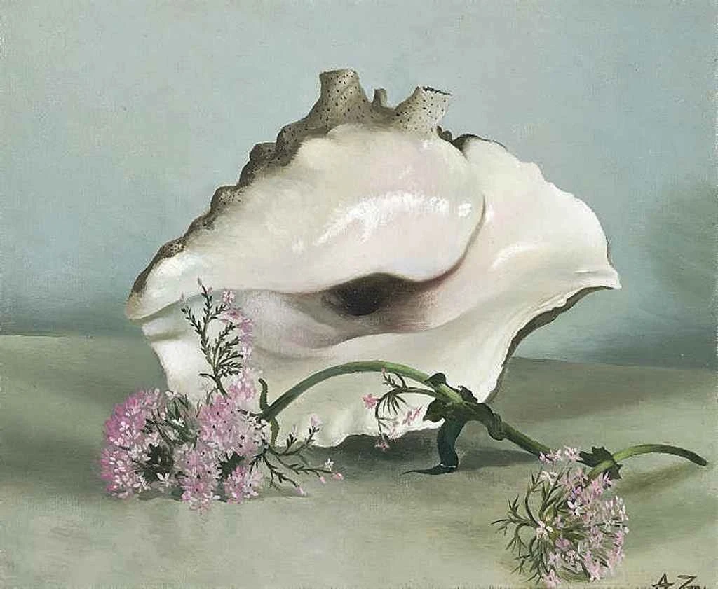 „Eine Meeresschnecke und Nelken“ ist ein Strandurlaub in Pinselstrichen. Muscheln und Blumen tratschen, wobei Anna die Geschichtenerzählerin ist. Es ist eine Symphonie der Meeresruhe, in der die salzige Brise mit dem süßen Duft der Nelken verschmilzt.