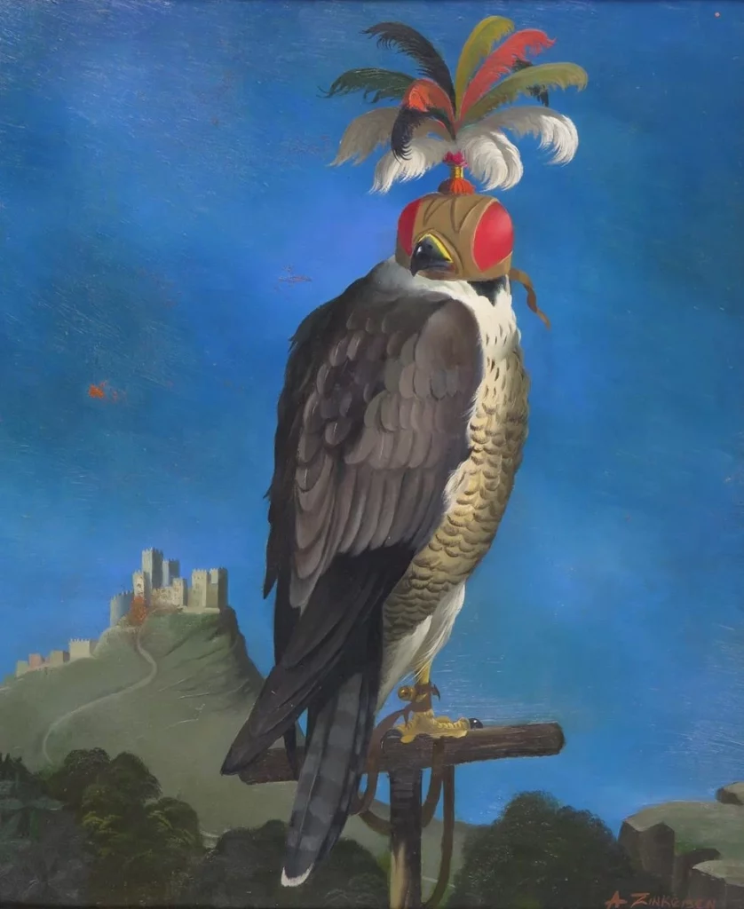 „Ein gehaubter Falke in einer Landschaft“ ist ein Raubvogel auf einem Leinwandabenteuer. Annas Pinsel verwandelt den Vogel in ein Symbol für Stärke und Anmut vor einer malerischen Kulisse. Die Landschaft wird zur Bühne, auf der Natur und Majestät in einer visuell fesselnden Aufführung kollidieren.