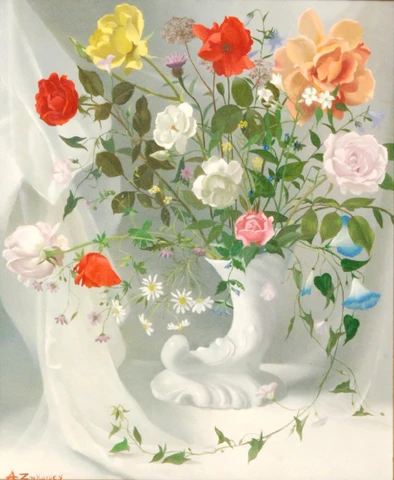 „Krönungsblumen“ sind Annas florale Hommage an die Monarchie. Die Leinwand blüht in den Farben der Feier, die das Wesen einer Nation in freudiger Einheit einfangen. Mit akribischer Aufmerksamkeit für Details verewigt Zinkeisen einen historischen Moment durch die zarte Sprache der Blumen.