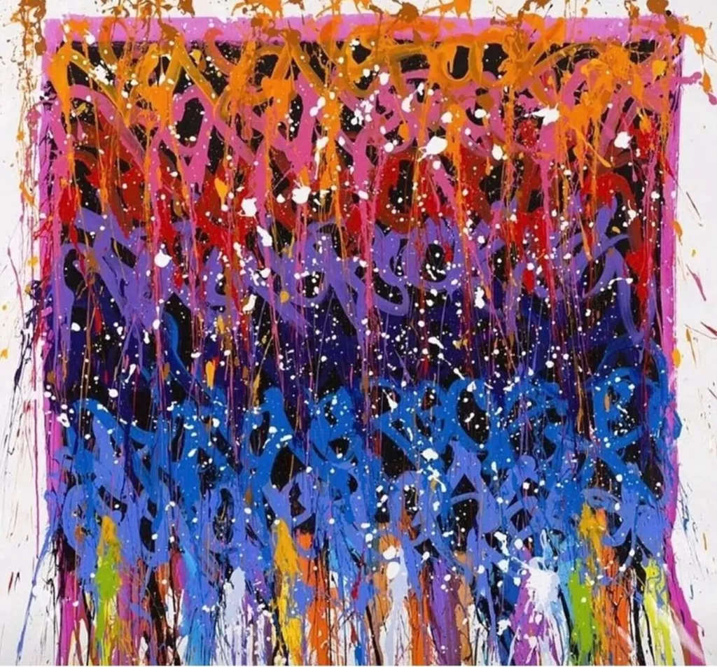 WUSSTEN SIE SCHON: JonOne integriert oft Elemente der Kalligrafie in seine Kunstwerke, wodurch seine lebhaften abstrakten Kompositionen mit dynamischer Energie und fließender Bewegung angereichert werden. Diese Verschmelzung von Straßenkunstästhetik mit der Eleganz kalligrafischer Pinselstriche verleiht seinen Werken eine unverwechselbare und faszinierende Dimension.