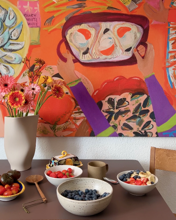 When someone comes over for the first time, my gallery wall of artworks really stands out, and it is interesting to see which art pieces they point out and which hidden gems are never noticed at first, but maybe later on. My friends notice new art pieces and are always curious about these, where they come from, who the artist is etc. Everytime I finish a painting, I invite friends over for an “opening.” It is not really an opening, just an excuse to meet and celebrate life.