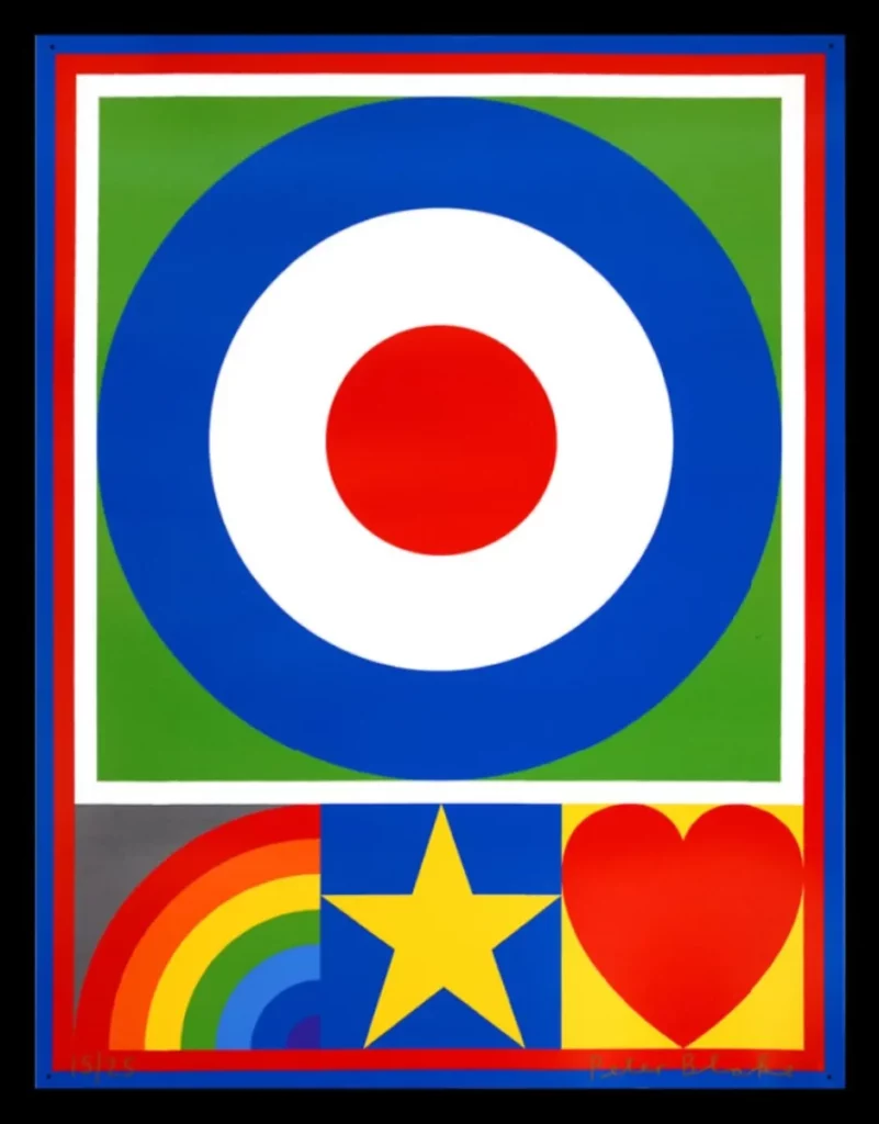 “Target” by Peter Blake is available on Singulart. It is an impressive artwork with a vibrant bullseye pattern set against an intensified background. This emblematic work personifies Blake’s passion for pop culture images and his dexterity of strong graphic elements to form visually stunning compositions.