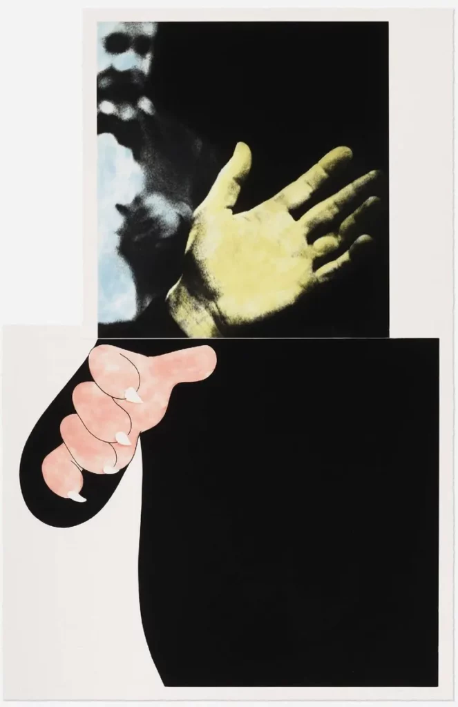 “Dos Manos (Con Figura Lejana)” de John Baldessari está disponible en Singulart. Es una obra evocadora que combina dos pares de manos contra un entorno desolado con una figura lejana en él.