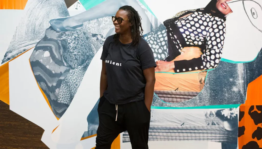 Imaginez ceci : Mickalene Thomas, née en 1971, est une artiste moderne qui adore créer des œuvres qui captent l’attention. Elle aime briser les règles de l’art et nous faire réfléchir à la beauté, l’identité, et bien d’autres aspects fascinants.
