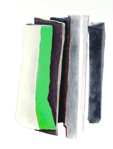 她運用墨水、水彩、丙烯、油彩和數位工具進行創作。在她的畫作中,她探索了二維與三維之間形式、表面和體積的相互作用。