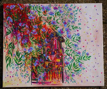Dieses Leinwandgemälde fängt einen ergreifenden Moment ein, in dem die letzten Blüten des Sommers zart vor dem Hintergrund eines kunstvollen Gebäudes verweilen. Die satten Farbtöne der Blumen, die von tiefem Purpurrot bis zu zartem Rosa reichen, bilden einen schönen Kontrast zu den komplizierten architektonischen Details des Gebäudes, das als Zeugnis der Zeit… steht. Das Gemälde weckt ein Gefühl von Nostalgie und hebt die flüchtige Schönheit des Sommers beim Übergang in den Herbst hervor. Die Gegenüberstellung der natürlichen und der von Menschenhand geschaffenen Elemente in diesem Kunstwerk spricht von der Harmonie und Spannung zwischen der vergänglichen Schönheit der Natur und der dauerhaften Präsenz menschlicher Handwerkskunst. Die Gesamtkomposition lädt den Betrachter ein, innezuhalten und über den Lauf der Zeit und die ruhigen, aber tiefgreifenden Momente nachzudenken, die oft unbemerkt bleiben.