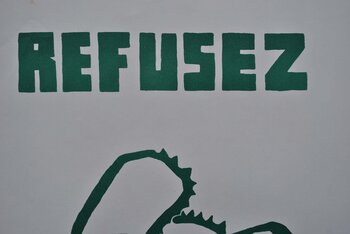 Anschließend arbeitet er mit den Druckereien zusammen, die der Bewegung am… meisten verpflichtet sind: Cogery, Cabasson und Griffon, damit seine Ausgabe (Papier, Drucktechnik) den auf den Straßen zirkulierenden Plakaten am nächsten kommt.