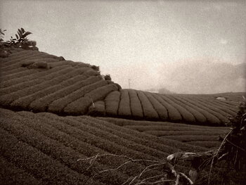 Das Foto zeigt ein Teefeld in der Nähe von Alishan während einer Wanderung am 8. Oktober 2025 um 17:28 Uhr.