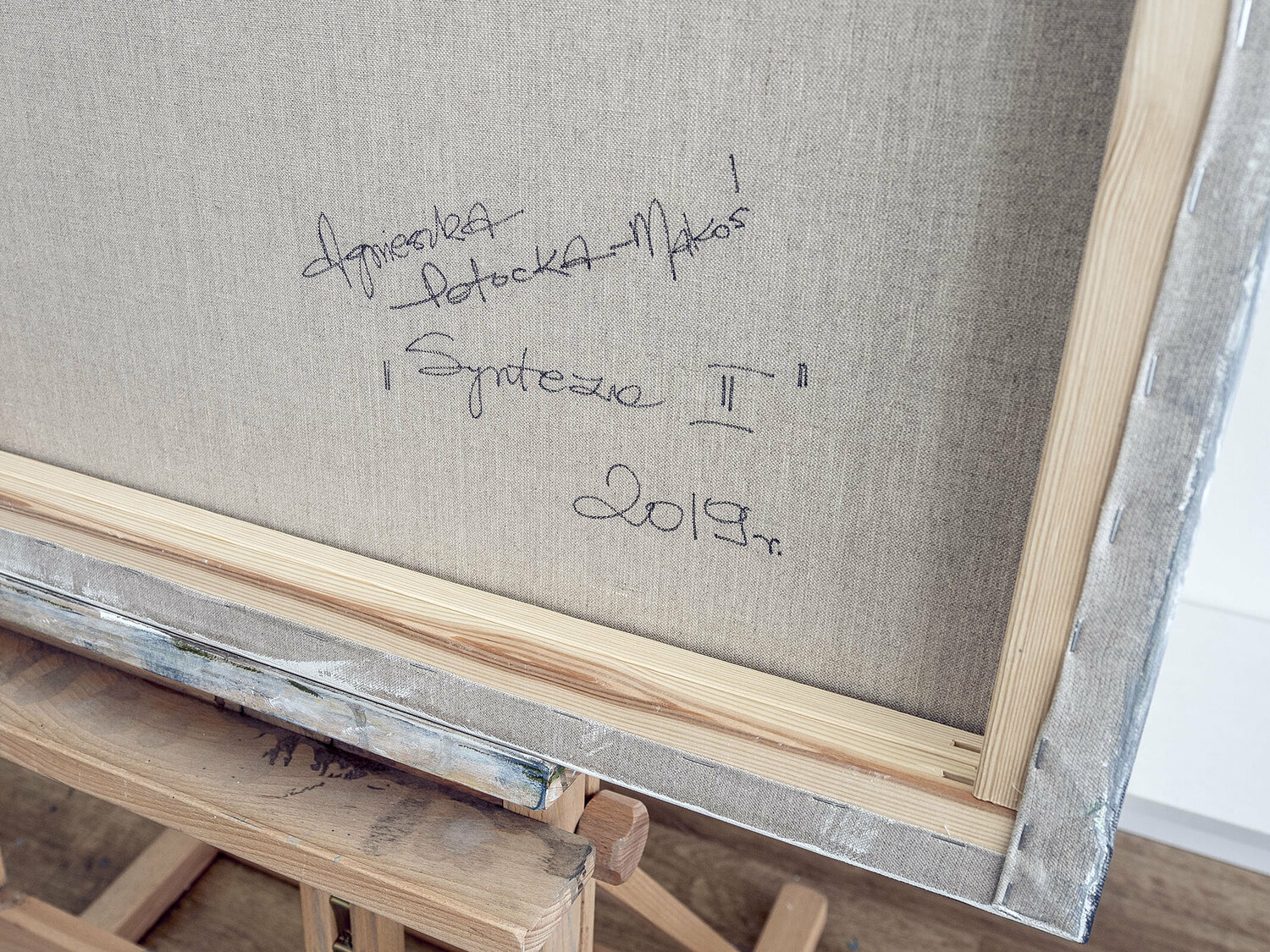 Auf der Rückseite des Gemäldes sind der Name, der Titel und das Jahr des Autors angegeben.