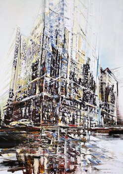 In diesem Öl auf Leinwand habe ich die Lebendigkeit einer erwachten Stadt zum Ausdruck gebracht, in der Lichter in einer Symphonie aus Farben auf der Architektur tanzen. Meine Pinselstriche, locker und doch absichtlich, fangen die Essenz von Bewegung, Leben und Reflexionen ein – die Seele einer Stadt im Morgengrauen. Dieses Stück wird einen Raum mit der dynamischen Energie der urbanen Wiedergeburt erfüllen, seine impressionistischen Akzente schaffen… einen zeitlosen und flüchtigen Moment.
