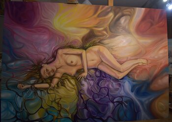 In diesem Werk habe ich meine Gefühle in die ineinander verschlungenen Formen und leuchtenden Farben einfließen lassen und den zarten Tanz zwischen Verletzlichkeit und Stärke eingefangen. Die fließenden Linien spiegeln die Komplexität von Gedanken und Träumen wider, während die warmen und kühlen Töne eine dynamische Energie erzeugen. Dieses Gemälde lädt zur Selbstreflexion und Befreiung ein und verwandelt jeden Raum mit seiner kraftvollen, gefühlvollen… Präsenz.
