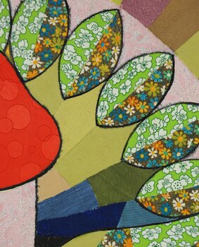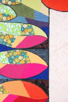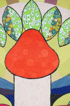 Dieses Stück ist ein Beweis für die Fülle des Lebens. Lebhafte Pop-Art-Farben tanzen über den Stoff und strahlen Vitalität und Harmonie aus. Es ist eine Symphonie aus Farbe und Muster, die Wachstum und Verbindung symbolisiert. Dieses Kunstwerk ist mehr als nur ein visuelles Fest, es ist eine Einladung, die Neugier und Vernetzung des Daseins zu erleben und jeden Raum mit seinem dynamischen Geist zu erfüllen.