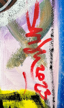 Ein Kunstliebhaber, Kauf getätigt am November 2023: "La Liberazione", Acryl, Farbspray auf Leinwand , 19,3 x 32,7 in