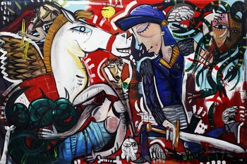 Ein Kunstliebhaber, Kauf getätigt am November 2023: "La Liberazione", Acryl, Farbspray auf Leinwand , 19,3 x 32,7 in