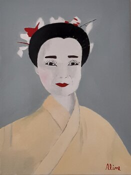 In diesem mit Acryl gemalten Werk habe ich versucht, das rätselhafte Wesen und die Gelassenheit der Geisha-Figur einzufangen. Es soll eine Hommage an Puccinis Werk sein. Diese Geisha spricht von Würde und Geheimnis. Dieses Gemälde strahlt Energie und einen Hauch orientalischen Mysteriums aus. Zusammen mit dem Gemälde erhalten Sie ein Echtheitszertifikat mit einem von mir signierten Gedicht.