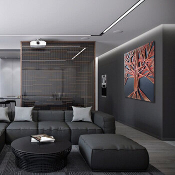 Der robuste Stamm und doch flexible zentrale Teil des Kunstwerks symbolisiert unser tägliches Leben und Bewusstsein, das von Erfahrungen und Herausforderungen geprägt ist.