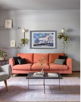 In diesem Aquarell habe ich das harmonische Gleichgewicht zwischen Impressionismus und Realismus eingefangen, um die stille Schönheit der Abenddämmerung einzufangen. Das sanfte Ineinanderfließen rosa und blauer Wolken strahlt Ruhe und Besinnlichkeit aus, während die zarten Bäume einen friedlichen, in der Zeit eingefrorenen Moment umrahmen. Ich wollte mit diesem Bild Ruhe und sanfte Energie in Ihre Räume bringen und jeden Raum in einen Ort der Stille… verwandeln.