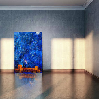 In meiner Arbeit habe ich die lebendige Essenz einer sternenklaren Nacht eingefangen, mit energischen Pinselstrichen und einer warmen Farbpalette, die einen Kontrast zu einem intensiv blauen Himmel bildet. Jeder Strich ist ein Flüstern der Leidenschaft und jede Farbe ein Spiegelbild fesselnder Emotionen. Wenn Sie darüber nachdenken, wird es Ihr Zuhause mit der Magie und dem Geheimnis eines ewigen Nachmittags erfüllen und die fesselnde Schönheit eines… in der Zeit schwebenden Augenblicks heraufbeschwören.