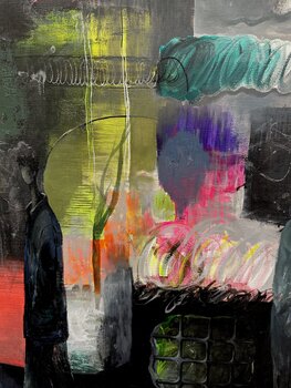 Bei dieser Verschmelzung von Acryl und Öl habe ich meine ganze Seele darauf verwendet, Expressionismus mit einem Hauch von Realismus und Surrealismus zu vermischen. Meine Striche verzaubern eine Reise voller Emotionen und fangen die Konvergenz von Gewöhnlichem und Magischem ein. Dies ist ein intimer Blick auf die menschliche Erfahrung, betont durch helle Kontraste und verträumte Elemente. Dieses Werk füllt jeden Raum, der zum Nachdenken führt, mit… Tiefe und einem Kaleidoskop aus Textur und Farbe.