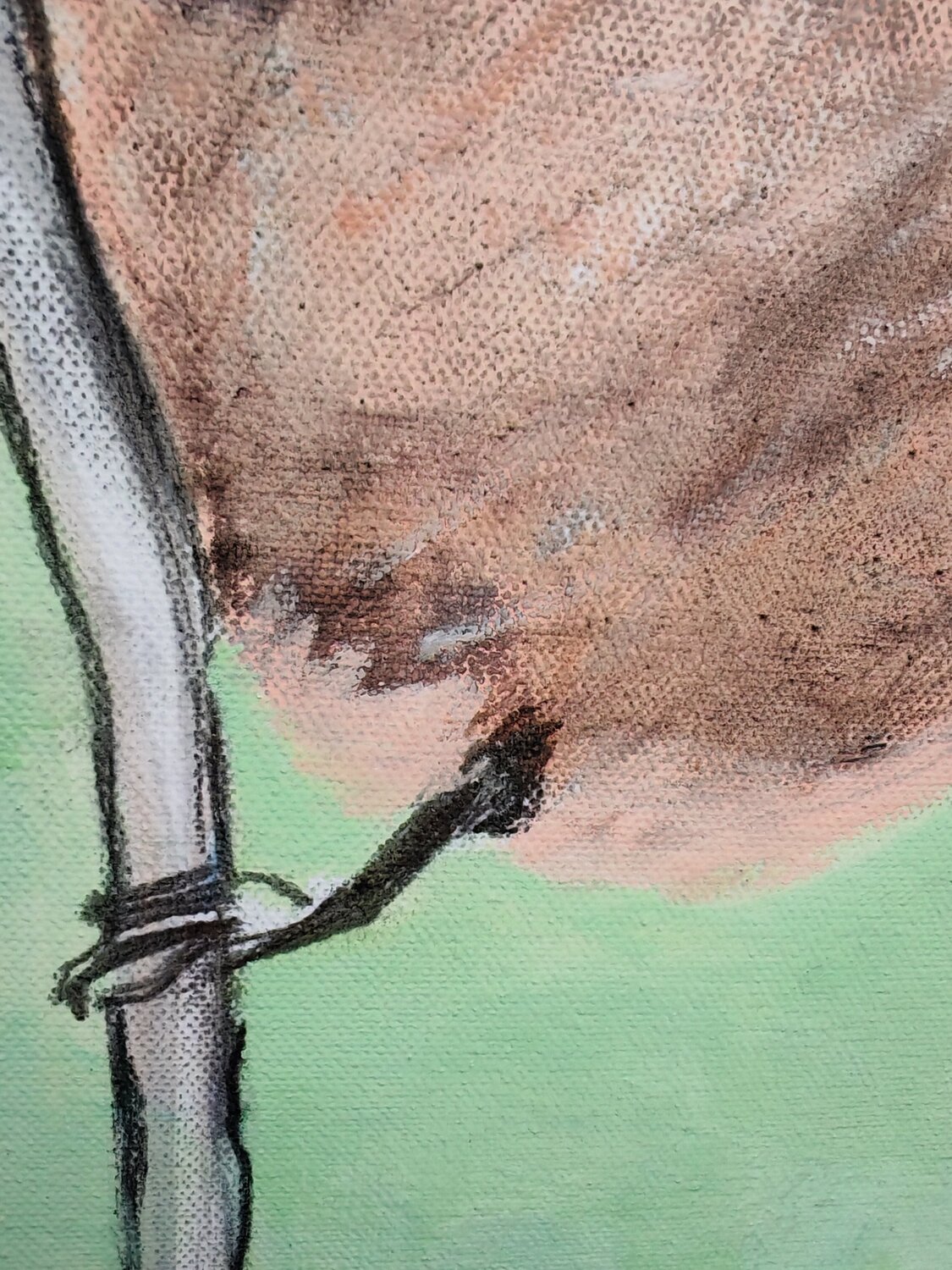 In diesem Stück habe ich die rohen Texturen von Acryl und Kohle verschmolzen, um das sanfte Wesen eines kleinen, ruhig hockenden Vogels lebendig darzustellen. Mein Ziel war es, die Einfachheit und flüchtige Schönheit der Schöpfungen der Natur durch den Realismus und die symbolische Präsenz des Vogels einzufangen. Sein subtiler Blick und seine zarten Federn rufen eine heitere Kontemplation hervor und laden den Betrachter ein, innezuhalten und die… ruhigeren Momente des Lebens zu genießen. Dieses Gemälde mit seinen sanften Grüntönen und der detaillierten Darstellung soll eine harmonische und beruhigende Energie in jeden Raum bringen.