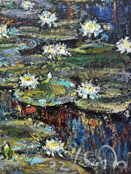 Instagram: @chebotaru.a „Lyrical Mood“, gemalt im Jahr 2022 in Kiew, Ukraine, ist eine Leinwand, die weiße blühende Lilien zeigt, die in einem Teich treiben. Im Hintergrund wächst Schilf und sorgt für eine natürliche Kulisse. Der gesamte Teich ist mit Blättern und Blüten der Lilien geschmückt, so dass der Eindruck eines schwebenden Blumenteppichs entsteht. Dem Künstler gelingt es, die Morgenstimmung einzufangen und die stille Schönheit des Augenblicks… einzufangen, in dem die Natur gerade erwacht. Das Gemälde entführt den Betrachter in eine Atmosphäre der Ruhe und Schwerelosigkeit und lässt ihn in die lyrische Stimmung des Morgenteichs eintauchen, der mit blühenden weißen Lilien geschmückt ist.