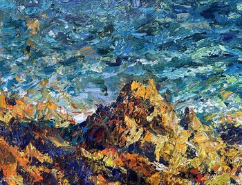 „Bay of Dreams“ fängt die raue Schönheit der Küste von Saint-Jean-Cap-Ferrat an der französischen Riviera ein. Das im impressionistischen Stil gemalte Kunstwerk vermittelt das schimmernde Spiel des Sonnenlichts auf dem türkisfarbenen Wasser, wo Wellen gegen goldene Felsen schlagen. Ein kleines Boot treibt friedlich dahin und ruft ein Gefühl von Gelassenheit und Abenteuer hervor. Reichhaltige Texturen und leuchtende Farben erwecken die mediterrane… Landschaft zum Leben und laden den Betrachter ein, in diese verträumte Meereslandschaft zu entfliehen.