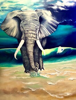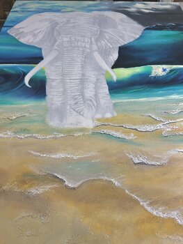 Dann gibt es dennoch eine Lösung, denn der Künstler arbeitet auch auf Kommission. Er kann stilistische Elemente, die Ihnen gefallen, in einem für Sie kreierten Werk einfließen lassen. Sie können dabei die Dimensionen bestimmen und wir verhandeln den Preis für Sie.