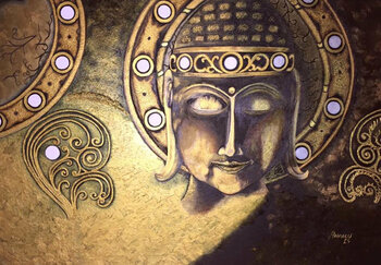 Bei der Erstellung dieses Gemäldes habe ich der Leinwand eine tiefe spirituelle Symbolik und einen Hauch von Zeitlosigkeit verliehen, der an Vintage-Kunst erinnert. Der heitere Ausdruck und die mystische Aura, die die Figur umgibt, rufen ein Gefühl von Frieden und Kontemplation hervor. Dieses mit zarten Ölstrichen geschaffene Kunstwerk verbindet auf harmonische Weise figurative und symbolische Stile und zielt darauf ab, in jedem Betrachter Einheit… und Liebe zu wecken. Es ist nicht nur ein Gemälde; es ist ein Erlebnis, das dazu einlädt, innezuhalten und in die Tiefen der eigenen Seele einzutauchen.