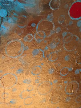 Acrylfarbe in Türkis und Bronze über Kupferspray und Strukturspachtel. In diesem Werk lasse ich lebendige Emotionen und sanfte Bewegungen ineinandergreifen. Die fließenden Blautöne treffen auf warme Erdtöne, durchbrochen von zarten Kreisen, die Spannung und Ruhe zugleich vermitteln. Es lädt dazu ein, in eine Welt der Gedanken und Gefühle einzutauchen und füllt den Raum mit einer harmonischen, positiven Energie. Im Licht reflektier die warmen Kupfer-und… Bronzetöne in einem metallischen Glanz. Die Signatur befindet sich auf der Rückseite.
