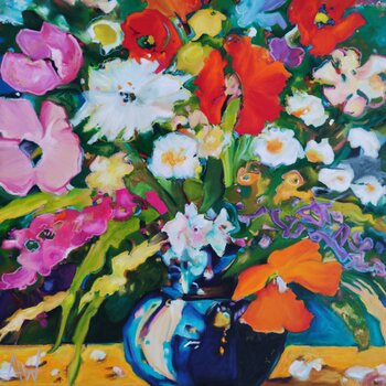 Sunlit Blooms - Vibrant Flowers in a Vase