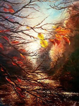 In meinem Ölgemälde habe ich das Flüstern des Herbstes eingefangen, verewigt in der letzten Glut der fallenden Blätter. Die impressionistischen Pinselstriche vibrieren mit Leben und farbenfroher Intensität, zeigen Spuren der Vergänglichkeit und der unendlichen Schönheit des Wandels. Dieses Werk ist eine sanfte Aufforderung, die vergänglichen Momente zu schätzen und die emotionale Energie jeder Jahreszeit zu umarmen. Es wird ein Hauch von meditativer… Ruhe und tiefer Reflexion in jedes Zuhause bringen.