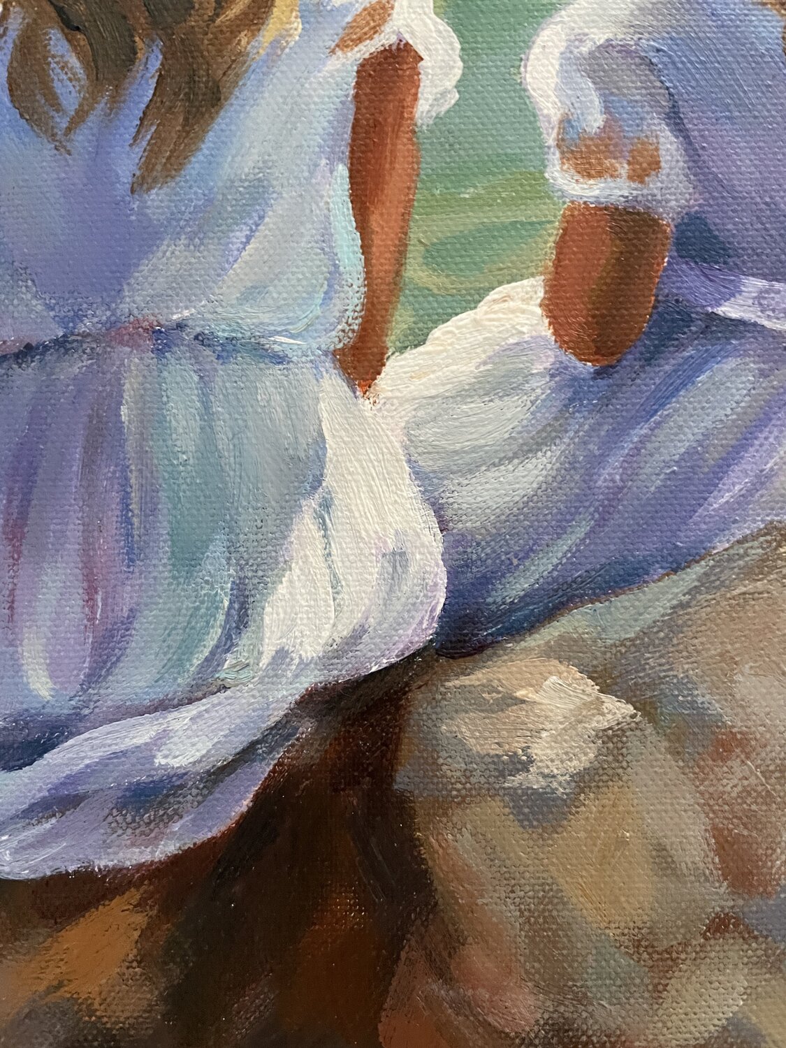 Ich habe mein ganzes Herzblut in die Darstellung der friedvollen Verbundenheit dieser beiden Mädchen mit dem endlosen Meer vor ihnen gesteckt. Im Stil des Impressionismus habe ich Licht und Farbe genutzt, um einen zeitlosen Moment der Unschuld und Ruhe einzufangen. Dieses Acrylgemälde verströmt eine friedliche, nostalgische Energie, die zum Innehalten und Genießen der kleinen Freuden einlädt und jeden Raum in eine Oase der Wärme und stillen Besinnung… verwandelt.