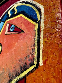 Ich habe dieses Werk mit Leidenschaft geschaffen, inspiriert vom Kubismus und der naiven Kunst. Jeder Pinselstrich in Öl ist eine Erforschung menschlicher Emotionen, verzerrt, aber erkennbar. Helle Farben und geometrische Formen laden zum Nachdenken über das eigene Bild und die eigene Wahrnehmung ein. Dieses Gemälde bringt kühne Dynamik in jeden Raum und regt zu Diskussionen und Selbstbeobachtung an.