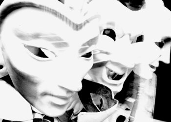 Venezianische Masken gibt es überall in Venedig, in Souvenirläden oder in Kunsthandwerksläden, die auf den Verkauf besonderer, aufwendiger und handgefertigter Masken spezialisiert sind. Das 2017 in Venedig aufgenommene Foto zeigt drei weiße Masken, die das gesamte Gesicht bedecken und unterschiedliche Gesichtsausdrücke darstellen. Durch die leichte Bewegungsverzerrung in der Fotografie scheinen die Masken fast zum Leben zu erwachen. Das Foto ist… auf glänzendem Fotopapier gedruckt, misst 50 x 70 cm und ist mit einem 100 x 70 cm großen schwarzen Holzrahmen gerahmt. Der Rahmen ist handgefertigt, 3 cm breit und ca. 1 cm dick und das Foto ist in ein weißes Passepartout eingefasst.