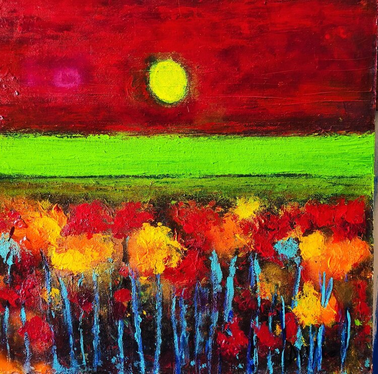 In diesem Werk habe ich versucht, die lebendige Energie der Natur und ihre kraftvolle Ruhe einzufangen. Durch den kühnen Einsatz von Acrylfarben, abstrakte Pinselstriche und ein intensives Farbenspiel erwecke ich einen beinahe mystischen Wald zum Leben, in dem jedes Element seine eigene Energie ausstrahlt. Die Palette aus Blau- und Rottönen vor dem Hintergrund erdiger Nuancen unterstreicht nicht nur die natürliche Schönheit, sondern weckt auch ein… Gefühl des Staunens und unendlicher Möglichkeiten und schafft so einen visuellen Rückzugsort in jedem Raum, in dem das Bild ausgestellt wird.