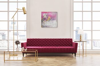 Die Farbpalette aus weichem Rosa, schimmerndem Gold und reinem Weiß verbindet sich zu einer floralen Struktur, die eine einzigartige Botschaft trägt. Eine persönliche Interpretation des Künstlers macht dieses Gemälde zu einer… bewegenden Darstellung der Verbindung - dass es nur eine Person im Leben gibt, die perfekt für eine andere ist.