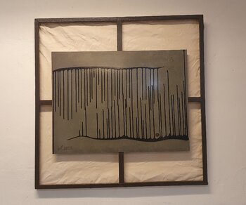 Sie entstand aus einem bewussten Impuls heraus. Dahinter steht die Intention, dem Keilrahmen "Sichtbarkeit in der Welt der Dinge" zu verleihen. Dieses Kunstwerk kann auch als Wandskulptur betrachtet werden. Es besteht aus drei Teilen.