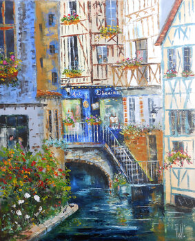 Ein Kunstliebhaber, Kauf getätigt am Juni 2024: "Pont suspendu", Öl auf Leinwand , 16,1 x 13 in