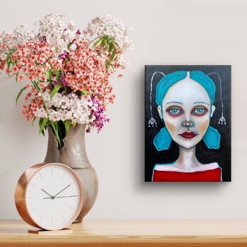 Basia Bimczok arbeitet mit hochwertigen Ölfarben auf Leinwand. Ihre kleinformatigen, zeitgenössischen Ikonen erinnern an folkloristische Votivmalerei. Sie kombiniert grafische Elemente mit traditioneller Lasurtechnik. Die figurativ abstrakten Werke strahlen eine surreale, isolierte Atmosphäre mit psychologischer Tiefe aus ohne dabei synthetisch fragmentierte Sinnesräume aufzumachen. Die Aufrichtigkeit der von Basia geschaffenen Figuren lädt zu einer Auseinandersetzung mit dem Werden und Nichtwerden von Identität ein. Basia hat Freie Kunst an der Hochschule für bildende Künste (HfbK) Lerchenfeld in Hamburg studiert.