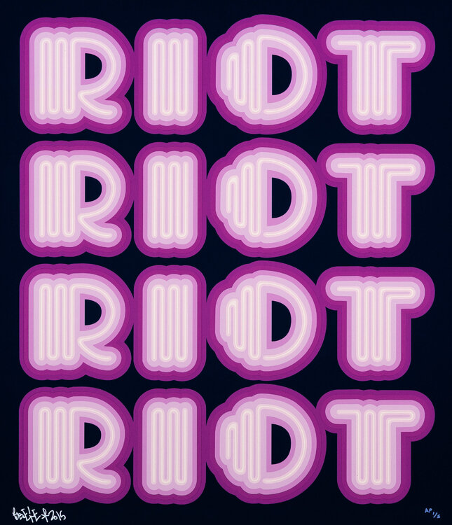 RIOT (Purple / Navy Ground), rare large hand signed screen print