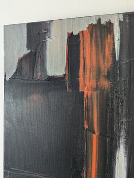 Das Gleichgewicht zwischen Spannung und Kontrolle verleiht der Leinwand eine kraftvolle, fast architektonische Präsenz und lässt gleichzeitig… Raum für eine feinfühlige und sich stetig weiterentwickelnde Interpretation. Die in Schichten und Vertiefungen gearbeiteten Texturen offenbaren eine Tiefe, die sich mit der Zeit entfaltet.