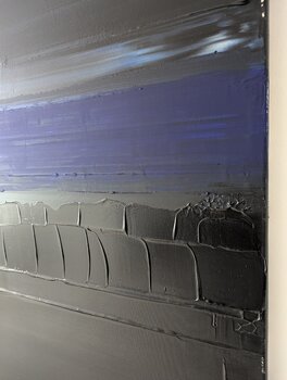 In dieser Arbeit erforsche ich die Tiefen menschlicher Emotionen durch Schichten aus Schwarz- und Blautönen, wobei ich jede Schicht mit Acryl forme. Das zentrale blaue Band symbolisiert wie ein Hoffnungsschimmer in der Dunkelheit einen Moment der Klarheit inmitten innerer Konflikte. Die visuelle Wirkung ist sowohl beruhigend als auch geheimnisvoll und lädt den Betrachter ein, in seine eigenen Tiefen einzutauchen und über die Gelassenheit und den… Tumult des Lebens nachzudenken.