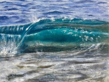 Dieses Artork ist eine Studie über eine Doppelwelle, die der Künstler während eines speziellen Workshops unter der Leitung der anerkannten Seestückkünstlerin Irina Cumberland gemacht hat.