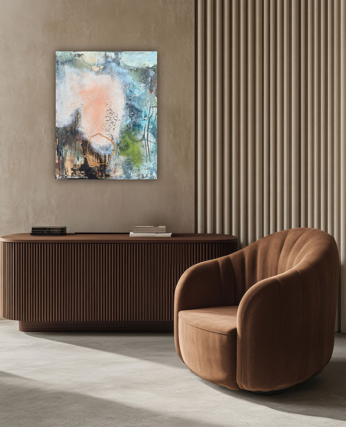 Ein Kunstliebhaber, Kauf getätigt am Februar 2025: "New streams to swim in", Acryl auf Leinwand , 45,7x35in