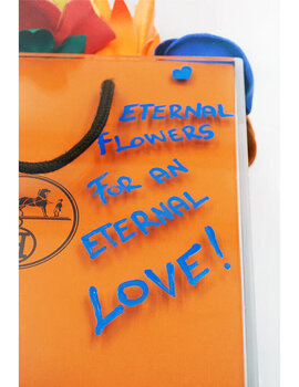 Plexiglas-Etui, Original Hermès Einkaufstasche, Lederblumen, handgefertigt, handgeschnitten