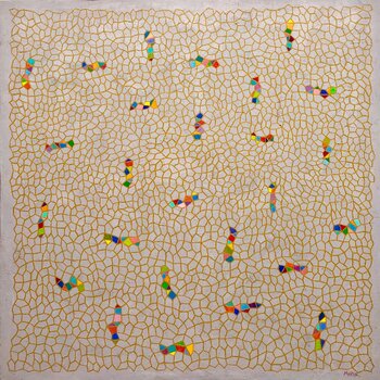 Dieses Werk verkörpert ein Universum unbegrenzter Möglichkeiten innerhalb eines geometrischen Kosmos. Mit Öl habe ich ein Netzwerk gebrochener Linien eingefangen, das Chaos und Ordnung miteinander verbindet. Knallige Farbtupfer symbolisieren plötzlich auftauchende Inspirations- und Kreativitätsblitze. Jedes Element vereint einen visuellen Tanz, der den Geist aktiviert und jeden Raum mit seiner lebendigen Energie verwandelt.