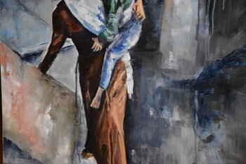 Ich wollte meine Sorge über die Realität eines schrecklichen Krieges zum Ausdruck bringen, umso mehr, als die Bomben auf die Zivilbevölkerung abzielen, in der Kinder und Frauen zu Tausenden sterben. Ich sehe in den Nachrichten, in den Zeitungen, wie die Liebe der Mütter ihnen die Kraft gibt, zu versuchen, ihre Kinder zu retten, „Mutmütter“, die in der Lage sind, manchmal nicht ganz so kleine Kinder an ihrem Körper festzuhalten und sie von diesen… fernzuhalten Orte, an denen sie jeden Tag vom Grauen heimgesucht werden und mit Angst im Gesicht einem ungewissen Schicksal entgegenlaufen. Ich habe mit dicken und kräftigen Strichen versucht, die Dramatik dieser Realität darzustellen.