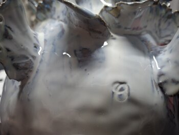 Das Objekt wurde 2x bei 900 und 1250 Grad gebrannt und hat ein Gewicht von 5200 g.