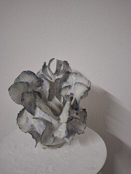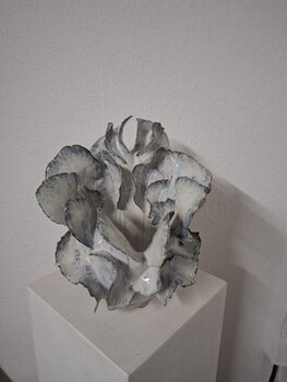 In dieser Skulptur habe ich die fragile Schönheit der Natur eingefangen, indem ich Plastik und Keramik vereint habe. Die organischen Formen wirken beweglich und lebendig, wie wilde und ruhige Wellen. Sie strahlt eine beruhigende Energie aus, die jeden Außenbereich mit einer sanften Dynamik belebt und den Betrachter einlädt, innezuhalten und die zarte Balance zwischen Härte und Zerbrechlichkeit zu spüren.